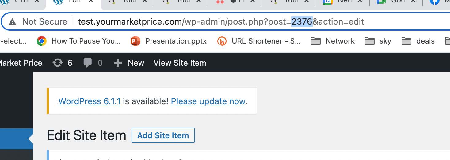 2. Enter the id of the item for the site you want to add. Add it. Wait for it to be added. Click on update